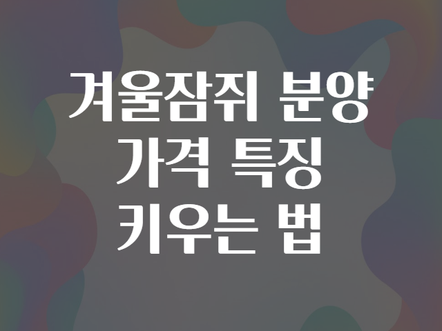 💰 겨울잠쥐 분양 가격과 구매 시 고려사항