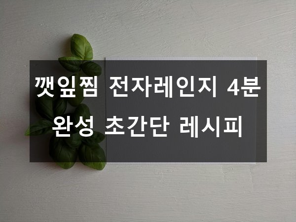 안녕하세요 여러분! 혹시 깻잎을 활용한 간단하면서도 맛있는 반찬 만들기, 어려우셨나요? 🤔 바쁜 현대인들에게 딱 맞는 초스피드 요리법, 전자레인지를 이용해 단 4분 만에 완성하는 깻잎찜 레시피를 소개합니다! 🕒✨
