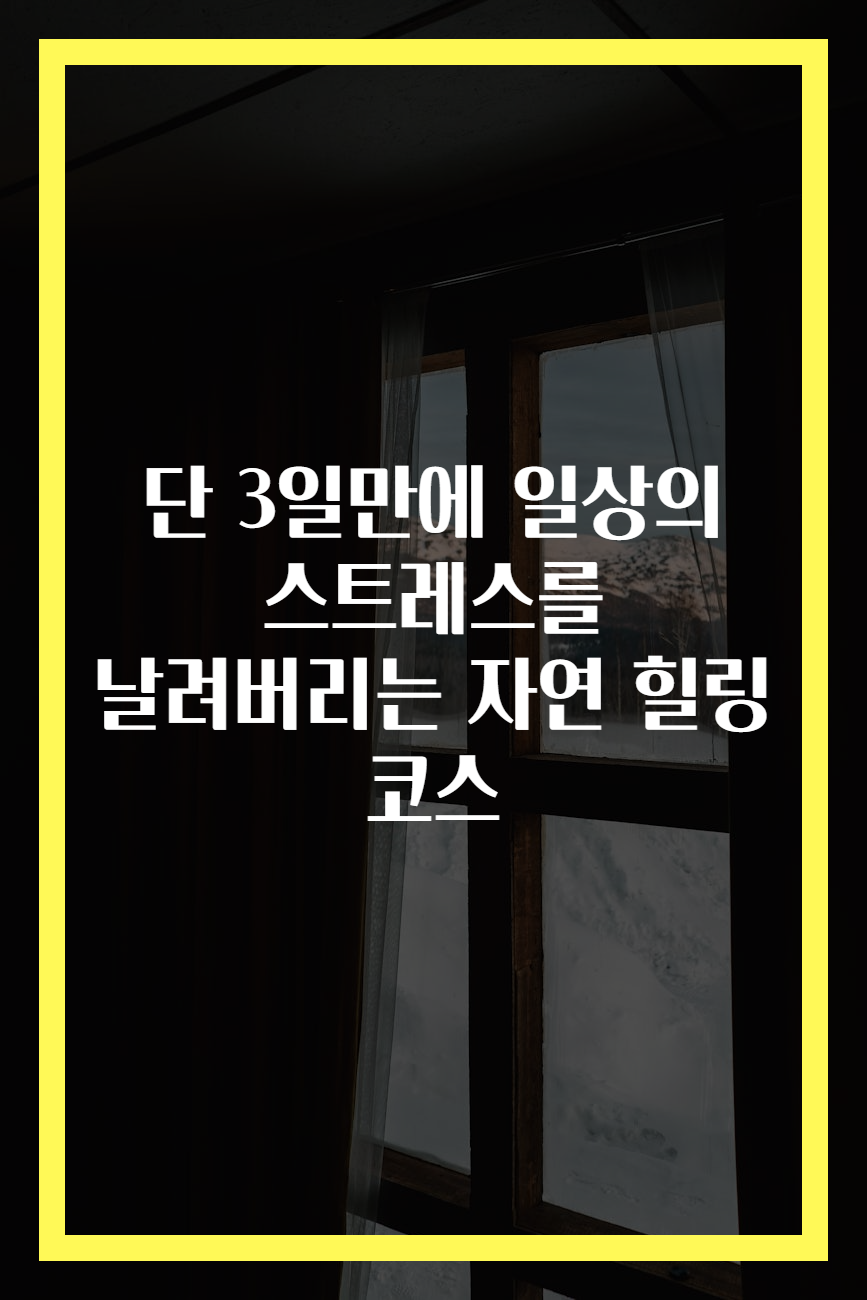 메타 설명: 자연에서의 힐링은 스트레스를 줄이고 심리적 안정감을 제공합니다. 3일 동안 자연 속에서 즐길 수 있는 힐링 코스를 소개합니다.