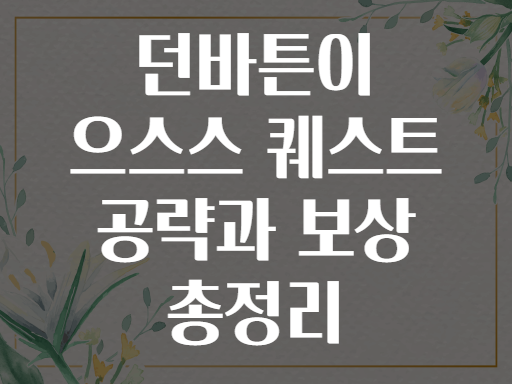 🌙 오늘은 ‘던바튼이 으스스’ 퀘스트의 전반적인 공략법과 핵심 보상들을 자세히 알아보고, 초보자도 쉽게 따라할 수 있도록 단계별 가이드도 제공합니다!