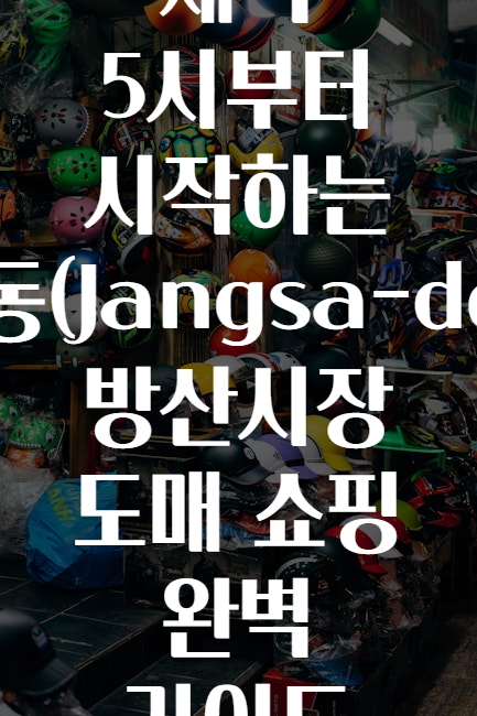 여러분, 혹시 새벽 5시부터 시작하는 시장의 매력에 빠져본 적 있으신가요? 🌅🌅 새벽 시장의 생동감과 싱싱함에 한 번 빠지면 헤어 나오기 힘들어요! 특히 장사동 방산시장 🏢은 오랜 역사를 자랑하는 도매 중심의 시장으로, 다양한 업종 종사자뿐만 아니라 일반 고객까지 끌어들이는 곳입니다. 오늘은 이 방산시장, 특히 도매 쇼핑의 꿀팁을 완전 정복하는 가이드를 소개할게요! ✅✨
