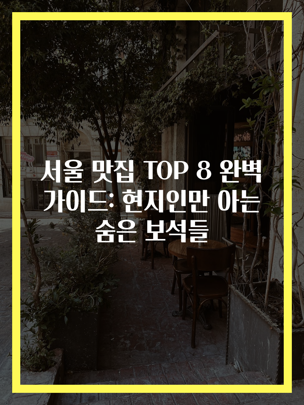 메타 설명: 서울의 숨은 맛집 8곳을 소개하는 완벽 가이드! 현지인들이 사랑하는 맛집들을 통해 서울의 진정한 맛을 경험해 보세요.