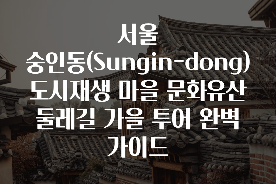 안녕하세요 여러분! 🍁 가을이 깊어지는 요즘, 서울의 숨겨진 보석 같은 장소를 찾고 계신가요? 오늘은 서울의 도심 속 작은 마을, 숭인동(Sungin-dong)에서 즐기는 특별한 도시재생 마을 문화유산 둘레길 가을 투어를 소개해드릴게요. 역사와 현대가 자연스럽게 어우러진 이곳은 도심 속에서 가을의 정취와 새로운 감성을 동시에 느끼기 딱 좋은 코스랍니다! 😊