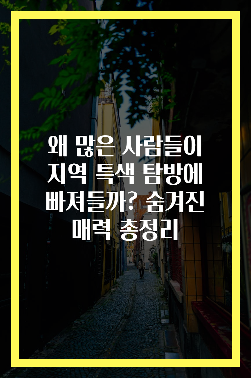 메타 설명: 많은 사람들이 지역 특색 탐방에 빠지는 이유와 그 매력을 분석합니다. 문화 교류, 경제적 이득, 지속 가능한 여행을 통해 새로운 경험을 찾아보세요!