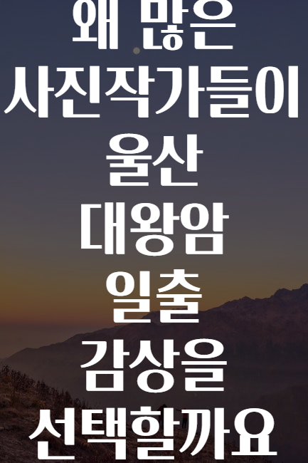 울산 대왕암은 사진작가들에게 매력적인 장소입니다! 그 이유는 풍부한 자연경관과 다양한 촬영 포인트 덕분입니다. 여러분도 이 멋진 장소에서 일출을 감상하고, 아름다운 사진을 남길 기회를 놓치지 마세요! 📸💖