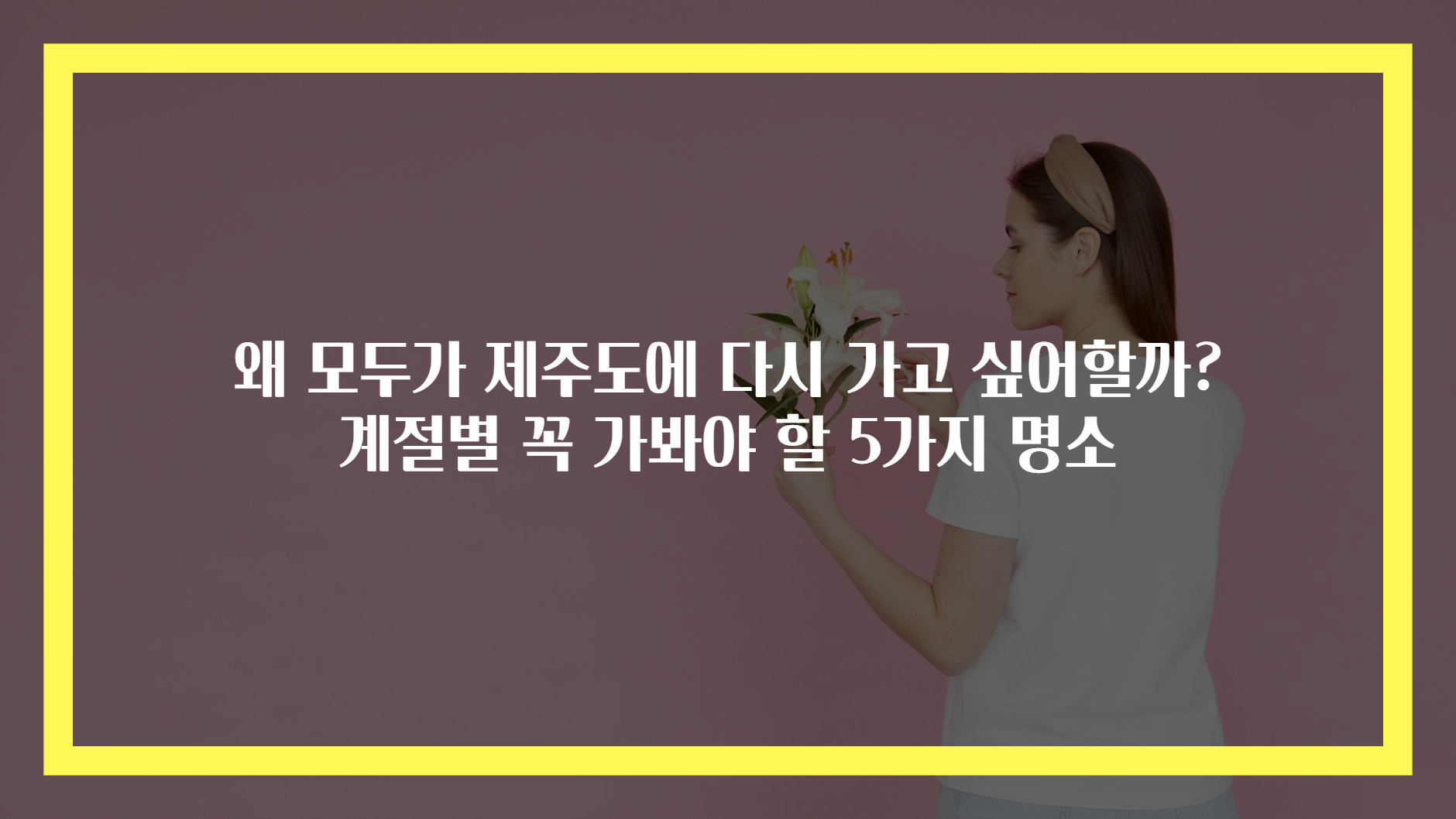 메타 설명: 제주도의 매력은 사계절 각각의 아름다움에 있습니다. 이 글에서는 제주도의 꼭 가봐야 할 명소를 계절별로 소개해드립니다.