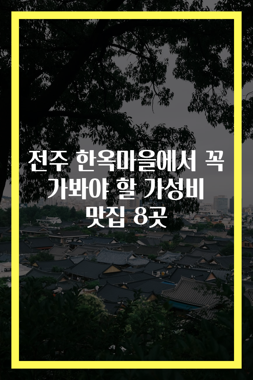 Meta Description: 전주 한옥마을에서 꼭 가봐야 할 가성비 좋은 맛집 8곳을 소개합니다. 전통 음식을 즐기고, 특별한 경험을 느껴보세요!