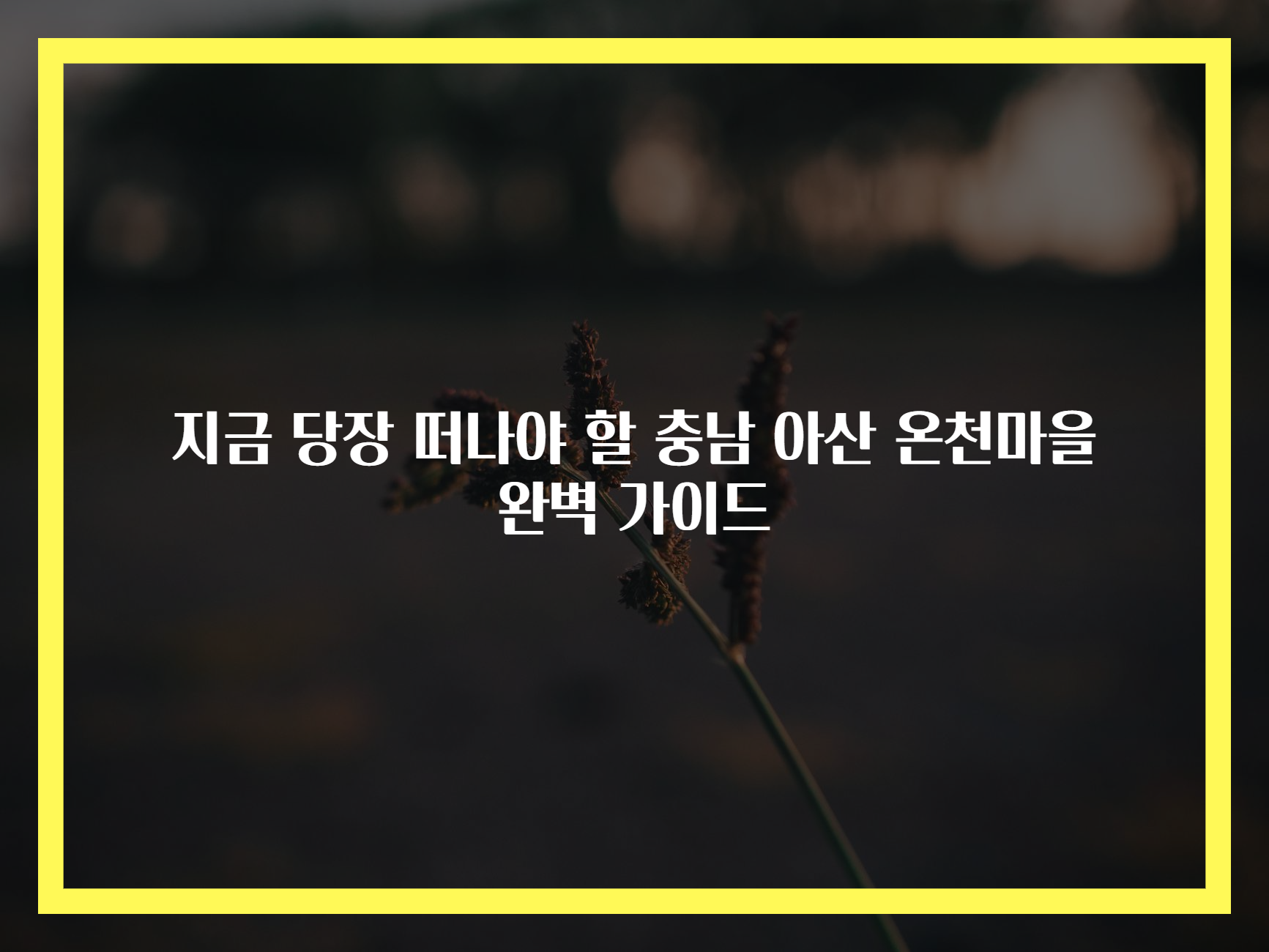 메타 설명: 아산 온천마을에 대한 완벽 가이드. 온천의 효능, 여행 필수 정보, 먹거리 팁을 한 곳에서 확인하세요!