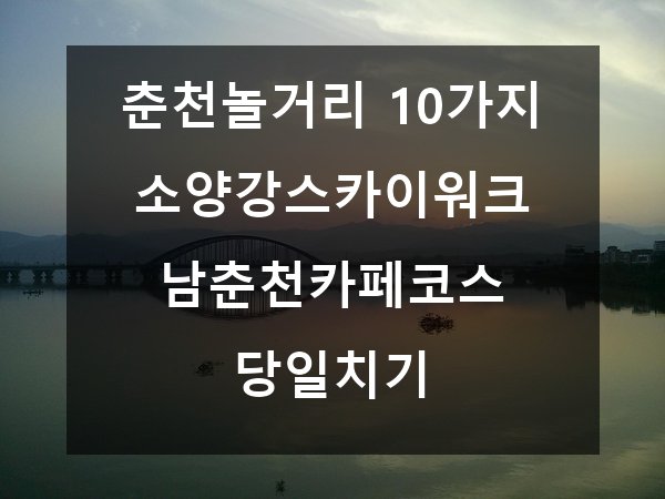 이번 글에서는 🌈 춘천의 필수 놀거리 10가지와 함께, 소양강스카이워크와 남춘천 카페 코스를 포함한 알찬 당일치기 여행 팁을 총정리해드립니다. 📌 지금 바로 봐요!