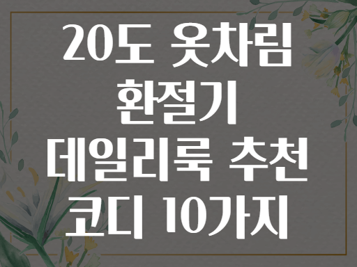 안녕하세요, 여러분! 🍂 갑자기 아침저녁으로 선선한 바람이 부는 요즘, 환절기 옷차림으로 고민 많으시죠? 특히 20도 내외의 기온대는 너무 덥지도 않고 춥지도 않아 어떤 옷을 입어야 할지 참 애매한 온도예요. 🤔 그래서 오늘은 ‘20도 옷차림 환절기 데일리룩 추천 코디 10가지’를 준비했습니다! 여러분의 스타일링 고민을 한 번에 해결해 줄 만능 코디 아이디어, 실용적인 팁을 함께 나눠볼게요! 🎉