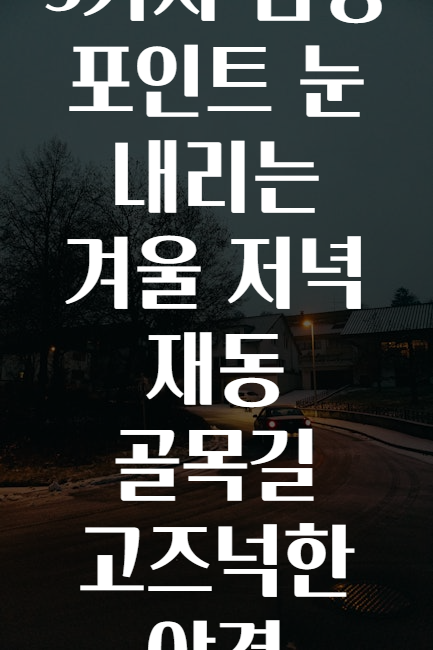 눈 내리는 겨울 저녁의 골목길은 감성을 자극하는 최고의 장소입니다! 🥰🛤️ 한번쯤 경험하고 싶은 겨울밤의 멋진 포인트를 체크리스트로 정리했어요. 😍🌙