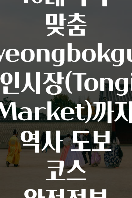 ❓혹시 40대라는 인생 주기에서 ‘여유로움’과 ‘문화적 깊이’를 동시에 즐기고 싶나요? 🎯 매일 반복되는 일상 속에서 잠시 벗어나, 한국 역사와 젊은 감성을 동시에 담은 도보 여행! 이번 글에서는 ‘경복궁’에서 ‘통인시장’까지 40대 부부에게 딱 맞는 역사 도보 코스를 친절하게 안내합니다. 🗺️✨