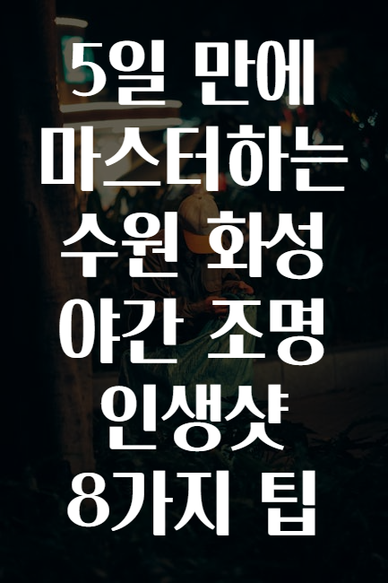 혹시 여러분도 아름다운 야경을 찍고 싶지만, 어떻게 해야 할지 막막한 경험 해보신 적 있으신가요? 😅 특히, 문화유산이자 아름다운 야경으로 유명한 수원 화성에서의 인생샷은 그 아름다움을 더해주죠. 🌌 여기에서는 단 5일 만에 여러분이 수원 화성에서 야경 촬영 스킬을 마스터할 수 있는 8가지 팁을 소개할게요. 📷✨