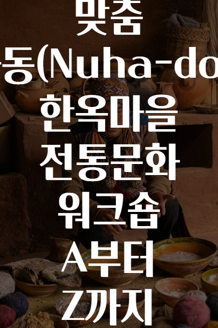 💡 50대 부부에게 딱! 전통문화와 자연, 맛과 멋이 어우러진 누하동 한옥마을 워크숍은 앞으로의 일상 속 소중한 오아시스가 될 거예요. 지금 바로 예약하고, 옛 정취와 현대의 감각을 조화롭게 즐기며, 더욱 의미 있는 시간을 보내보세요!