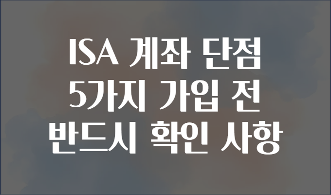 ISA 계좌 단점 5가지 가입 전 반드시 확인 사항 📌💸