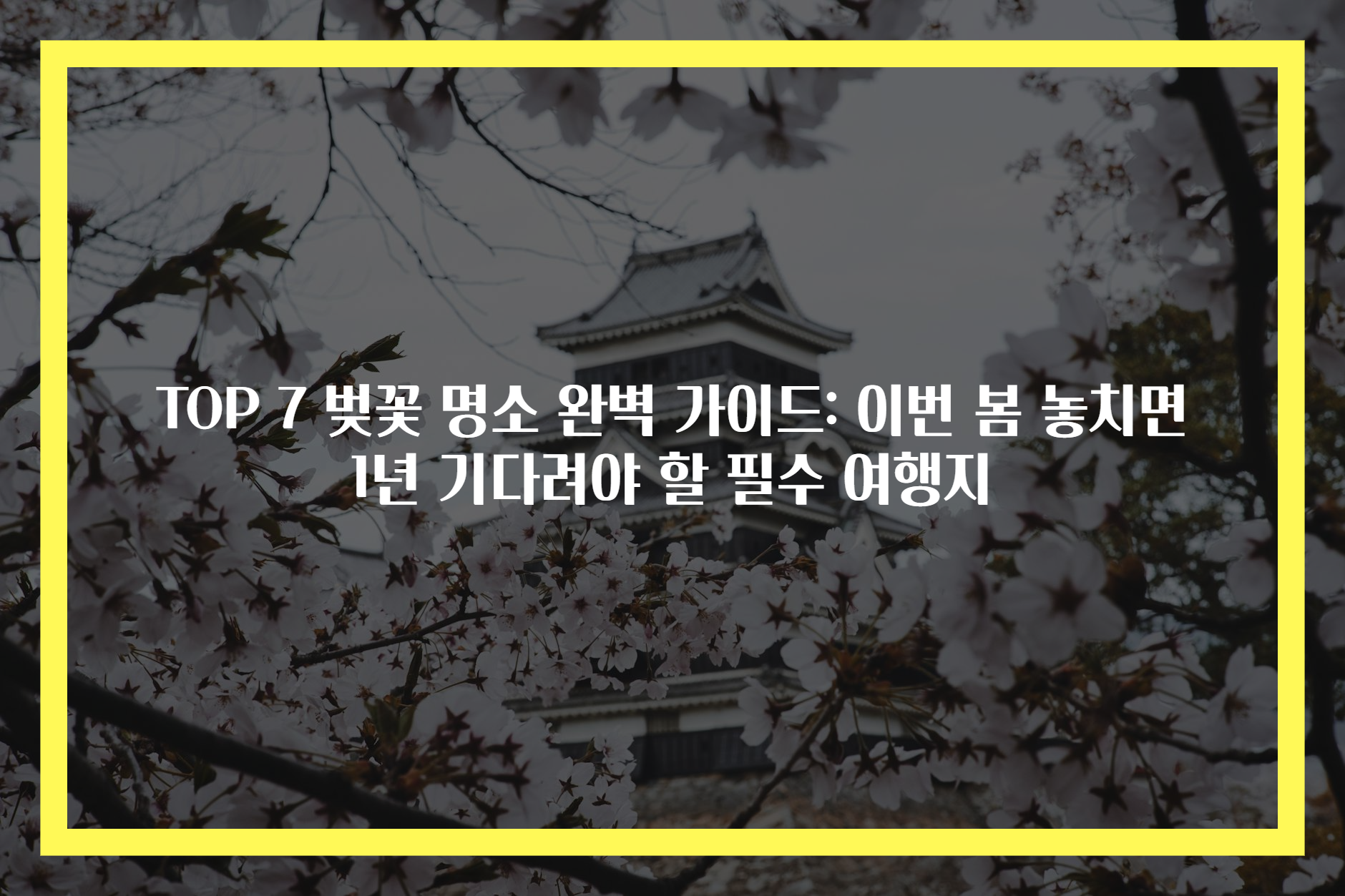 메타 설명: 봄에 놓치면 안 될 한국의 TOP 7 벚꽃 명소를 소개합니다. 이번 벚꽃 시즌 최고의 여행지를 알려드립니다.